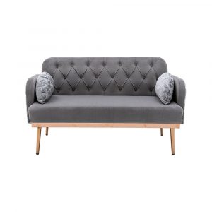 Velvet Sofa, Button Tufted Couch with 2 Pillows